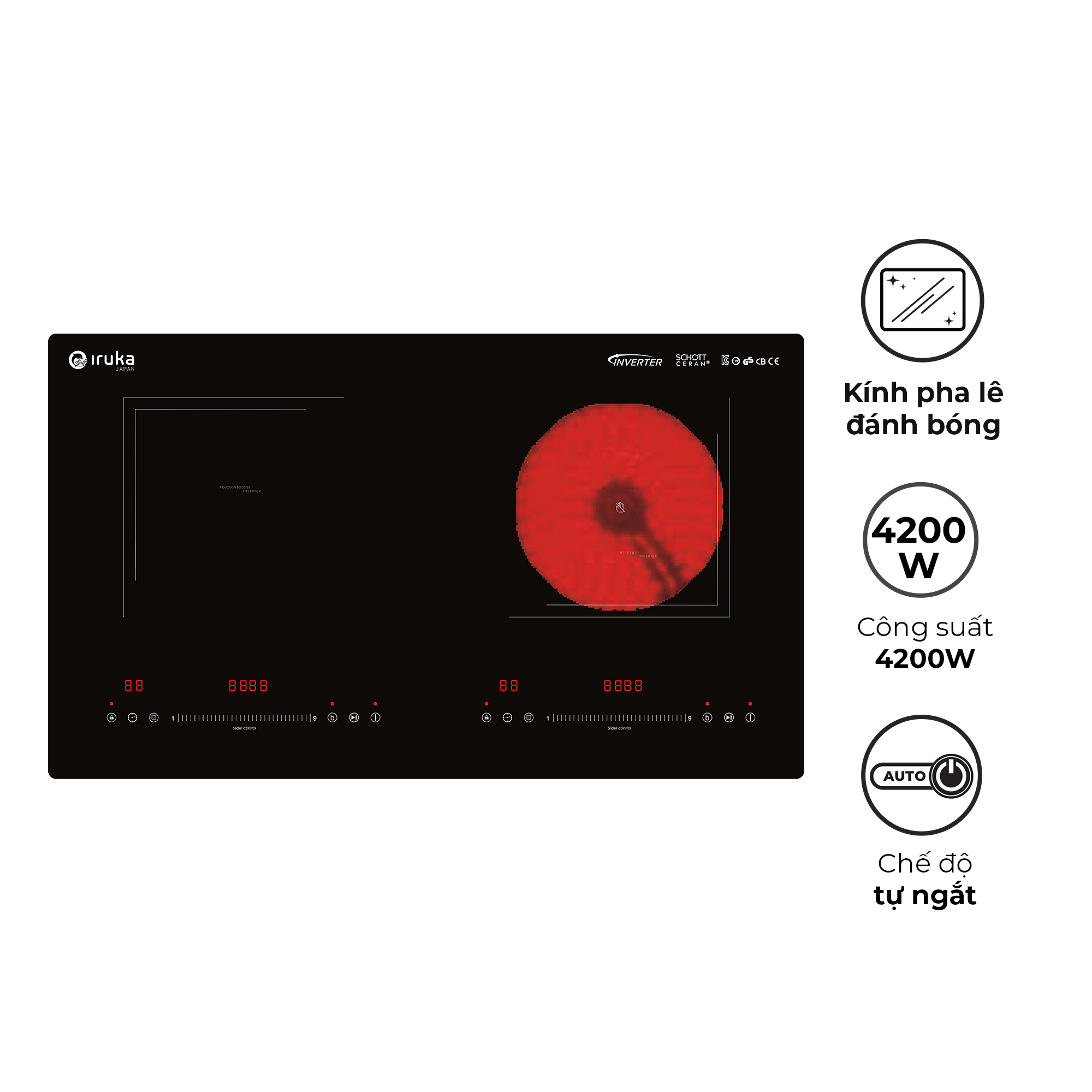 - Mặt kính: Schott Ceran